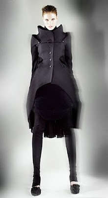 With the apartment all Christmasy and plans to adorn my dress form for a holiday outfit photo shoot (soon!), I have fallen in love with the newest addition to The Shop, The Paris Dress by Czajkowski (I feel like a first name is missing). I personally would wear the top styled as in the first photo, but I of course love having options. And, while I do not have £395.00, I can't believe that it's only £395.00! Absolutely beautiful. And since it's still -40 out, I need a coat to go with it, so I'll have to pick one of those perfect Kristofer Kongshaug ones...how about this one (below), to accommodate and show off the hand gathering/drapery/ruffles. Would it be a crime to wear those leggings and flats with the dress too? At least until I get to the party...